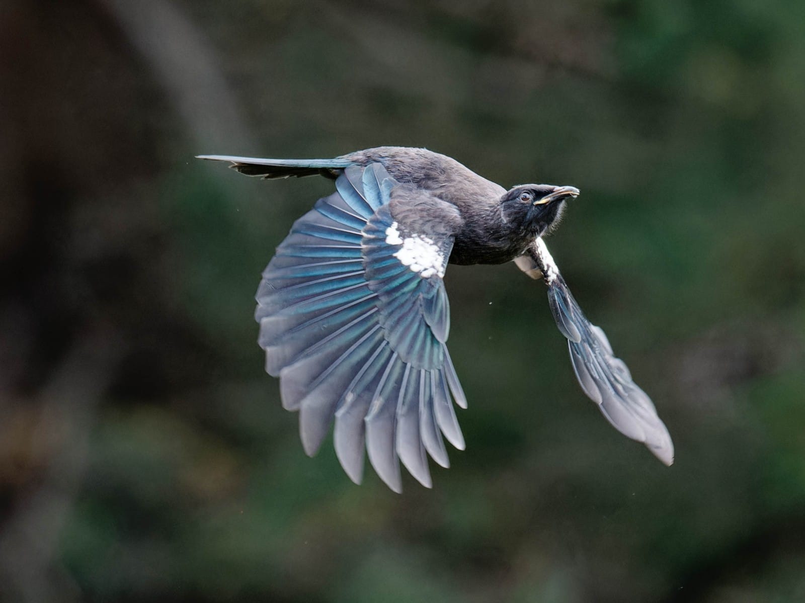 Young Tūī in flight