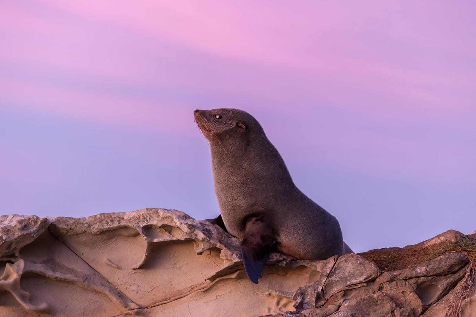 Fur seal pup at sunrise